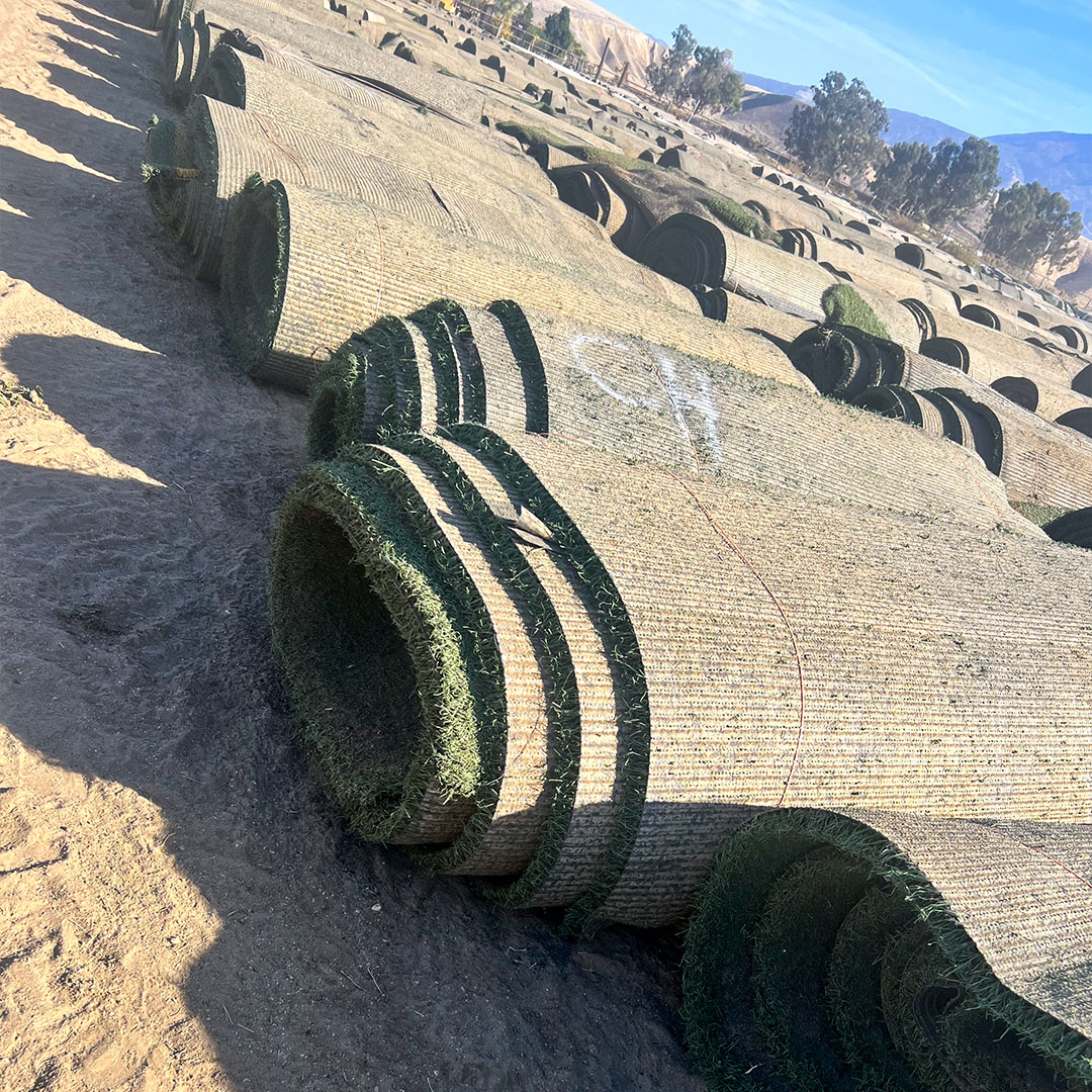 Used artificial grass is sourced directly from sports fields at $0 cost, then resold into the landscape market at $0.25–$0.39 per square foot.